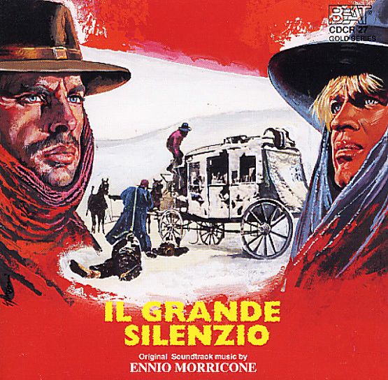 Un an avant de faire tourner Johnny Hallyday dans « Le spécialiste », le réalisateur Sergio Corbucci engagea Jean-Louis Trintignant pour jouer le rôle de Silence dans le film « Il grande silenzio », en 1968. Et oui, l’acteur Français qui jouait avant ça dans « Les biches » de Claude chabrol et qui interprétera le juge d’instruction dans l’excellent film de Costa Gavras « Z » l’année suivante , joue donc dans ce western à la sauce spaghetti. Si de prime abord nous pouvons douter du bien fondé de cette réunion des genres et bien force est de constaté, à la vision du long-métrage que l’acteur est tout à fait crédible. il est vrai que, comme le nom de son personnage, il ne dit pas un mot, et pour cause celui-ci est muet. Mais qui est Silence, c’est le meilleur tireur du coin et même le shérif, qui, pourtant, sait tirer, ne cherche pas à l’affronter. Les chasseurs de primes font la chasse aux gens dont la tête est mise à prix (Les hors-la-loi, quoi) pendant que Silence règle leur comptes aux chasseurs de primes, normal c’est à l’un d’eux qu’il doit d’être muet (il a une grande cicatrice au cou) et de plus ils ont tués ses parents sous ses yeux. Le film est donc un film sur la vengeance et dans ce contexte, l’acteur est très impressionant. Il faut dire que face à lui, il y a Klaus Kinski et Frank Wolf qui jouera, ensuite dans le légendaire film « Il était une fois dans l’Ouest« . Dans ce Western, il y a beaucoup de violence, de sang, de poursuites le tout dans un décor enneigé qui participe largement à cette atmosphère si particulière lié aux – bons – Western Spaghettis. Sergio Corbucci fait partie de ces réalisateurs qui ont su, non pas imiter, mais plutôt emboiter le pas au créateur du genre, à savoir Sergio Leone. Et comme avec Sergio Leone, Ennio Morricone a collaboré aussi longuement avec le réalisateur dont « Navajo Joe » en 1966 ou « Il mercenario » la même année. Pour ce film où le nombre de morts est tout de même impressionnant et où le réalisateur ne recule devant rien (tentative de viol, massacre organisé) le maestro a composé une musique à la fois nostalgique (Il grande Silenzio) et aussi une musique de suspens avec des flûtes limite stridentes et un orchestre minimaliste (Immobile) des tracks de poursuite très réussis (eBarbara e tagliente) ainsi que des thèmes d’ambiance de saloon. De cette BO, deux titres ressortent principalement. Il s’agit tout d’abord du morceau « Invito all’amore » qui est comme une bouffée d’air frais dans ce Western pas très optimiste. Cette scène qui se déroule d’une façon si belle, si tendre conjuguée à la puissance de la musique du maestro créé un moment tout simplement magnifique au milieu de toute cette cruauté. Le couple Trintignant / Vonetta McGee fonctionne et on ne peut qu’accepter l’invitation. « L’ultimo gesto » est l’exemple même de ces évolutions du compositeur que l’on aime tant et celle-ci possède aussi une force au regard de la scène mais à l’écoute seule où l’on peut redécouvrir toute l’intensité de la scène que l’on se doit d’appeler d’anthologie tant elle prend aux tripes et que l’on retrouve le mariage musique / image cher à ce genre avec les gros plans sur les yeux, par exemple. vous l’aurez compris, ce film n’est pas une simple réplique du style spaghetti mais bien une oeuvre de très grande qualité et pour celà, Ennio Morricone a composé une musique digne de figurer aux côtés des meilleurs scores qu’il ait pu faire.