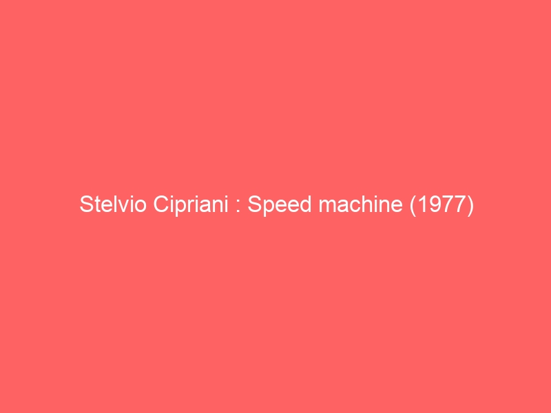 Stelvio Cipriani : Speed machine (1977)